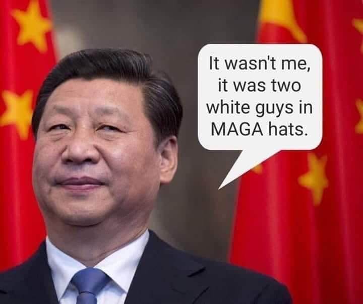 China’s President Blames COVID-19 On “Two White Guys with MAGA Hats”